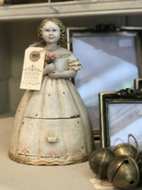 Meisje met bloemen ladenkastje