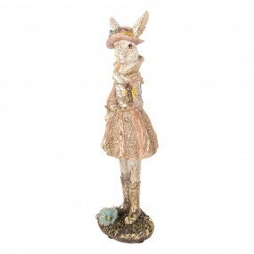 Prachtig konijnenbeeld met gouden glitters. Dit beeldje is niet alleen een perfecte decoratie voor Pasen, maar ook een stijlvol accent voor andere gelegenheden. Een origineel idee voor een paascadeau.