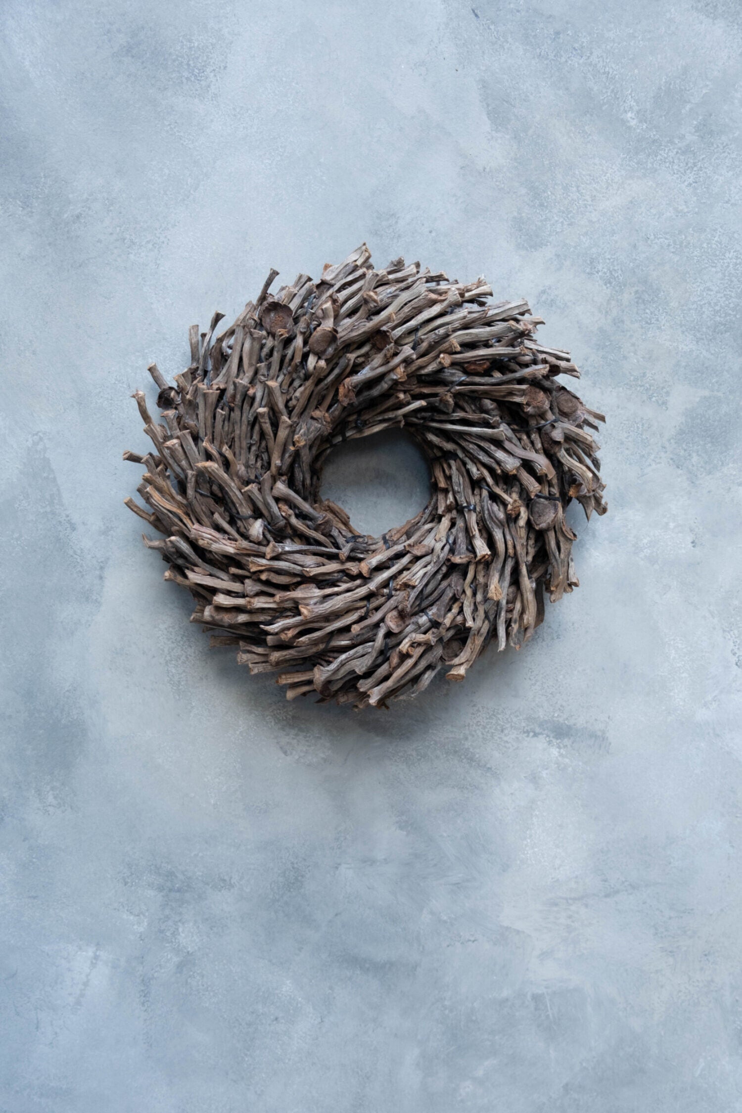 Handgemaakte natuurlijke krans van kokos twijgen. Duurzame woondecoratie met een warme en stoere uitstraling.